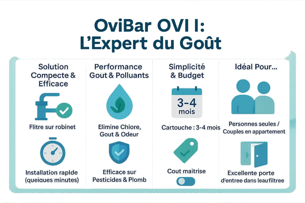 Pour une famille soucieuse de boire une eau sans PFAS ni chlore, tout en profitant d’un débit instantané d’eau à température contrôlée, l’OviBar OVI I s’impose comme une solution hybride idéale.
